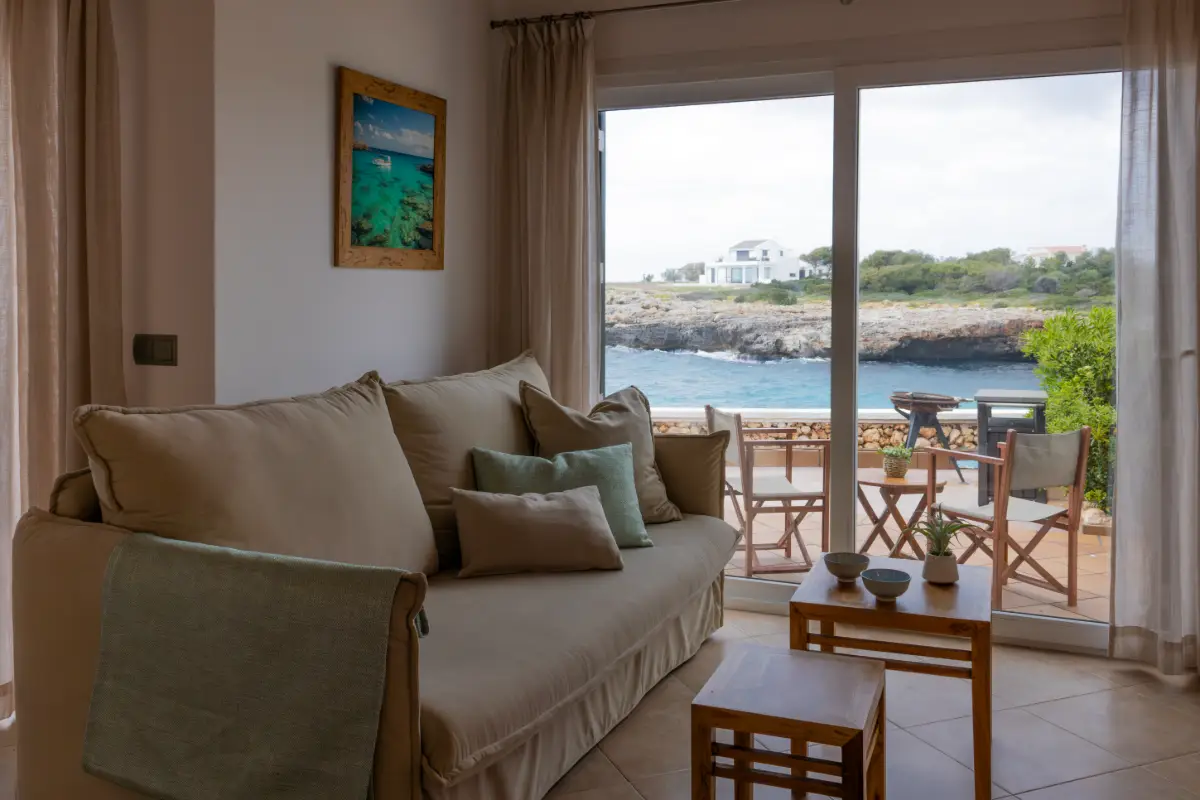 Chalet Cala Blanca se encuentra cerca de la playa y de calas tranquilas del sur de Menorca. Su ubicación permite combinar descanso y exploración, con fácil acceso a rutas locales y a los servicios y comercios de la zona.